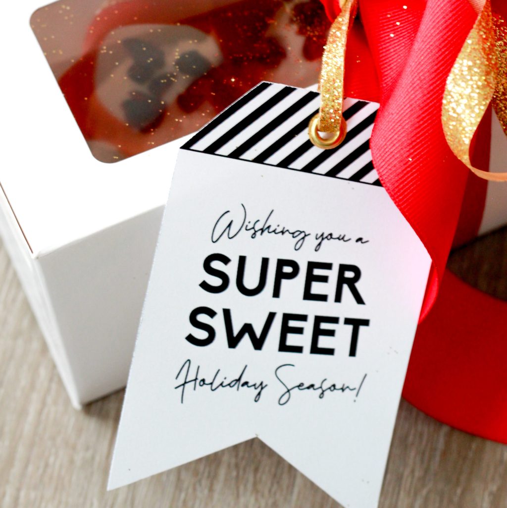 I designed these “super sweet” printable tags to add to the packages of homemade cookies I was giving to my family and friends this year. And I thought you could use them on all your holiday treats that you’ll be gifting this week too! I did two versions so that you could pick which feels most appropriate for you, a “Holiday” version, a “Christmas” version, or BOTH!